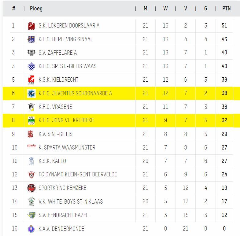 Op speeldag 21 trok KJV Kruibeke naar Juventus Schoonaarde. Voor aftrap van de wedstrijd stond Schoonaarde met 35 punten op de 7e plaats, vlak boven KJV Kruibeke (32 punten, 8e). Bij Schoonaarde ventileerde men vooraf nog de ambitie om de eindronde voor promotie naar 1e provinciale te spelen (lees dit artikel na op SportRegio).